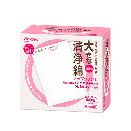 - 脱脂綿に殺菌剤の水溶液を浸みこませ、1包ずつ密封し高圧蒸気滅菌した清浄綿です。赤ちゃんの口まわりや授乳時の乳首、目や局部の清拭にお使いください。産後の衛生処理(lǐ)に使いやすい〔大判タイプ〕もあります。
