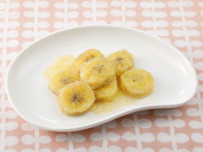 - バナナを輪切りにし、バターを熱したフライパンで焼き目がつくまで焼きます。