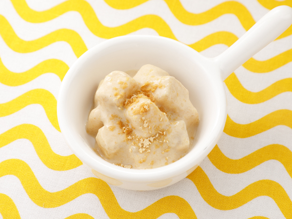 - プレーン ヨーグルト、バナナ、半量のきな粉を混ぜ合わせます。