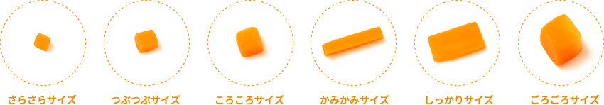 最大6段階の大きさ・固さ
