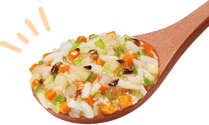 食べやすくほぐした鶏ささみ肉と讃岐うどんを、たっぷりの野菜と一緒にかつお昆布だしでやわらかく煮込みました。